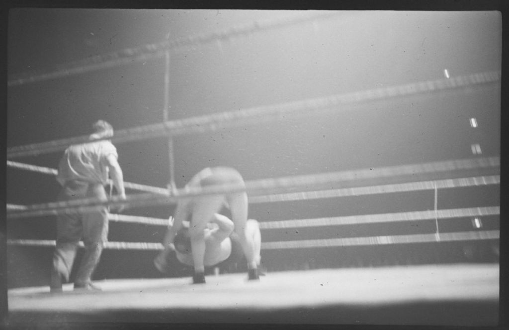 Wrestling. At the Forum, Octobre 1941, Archives nationales à Montréal, Fonds Conrad Poirier, (06M,P48,S1,P7337), Poirier, Conrad.