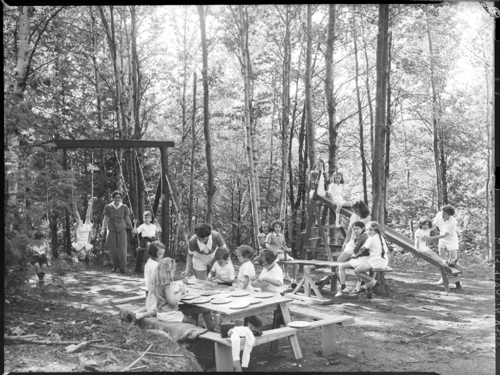 Camp. Wooden Acres. Children Playground, 22 août 1942, Archives nationales à Montréal, Fonds Conrad Poirier, (06M,P48,S1,P7407), Poirier, Conrad.