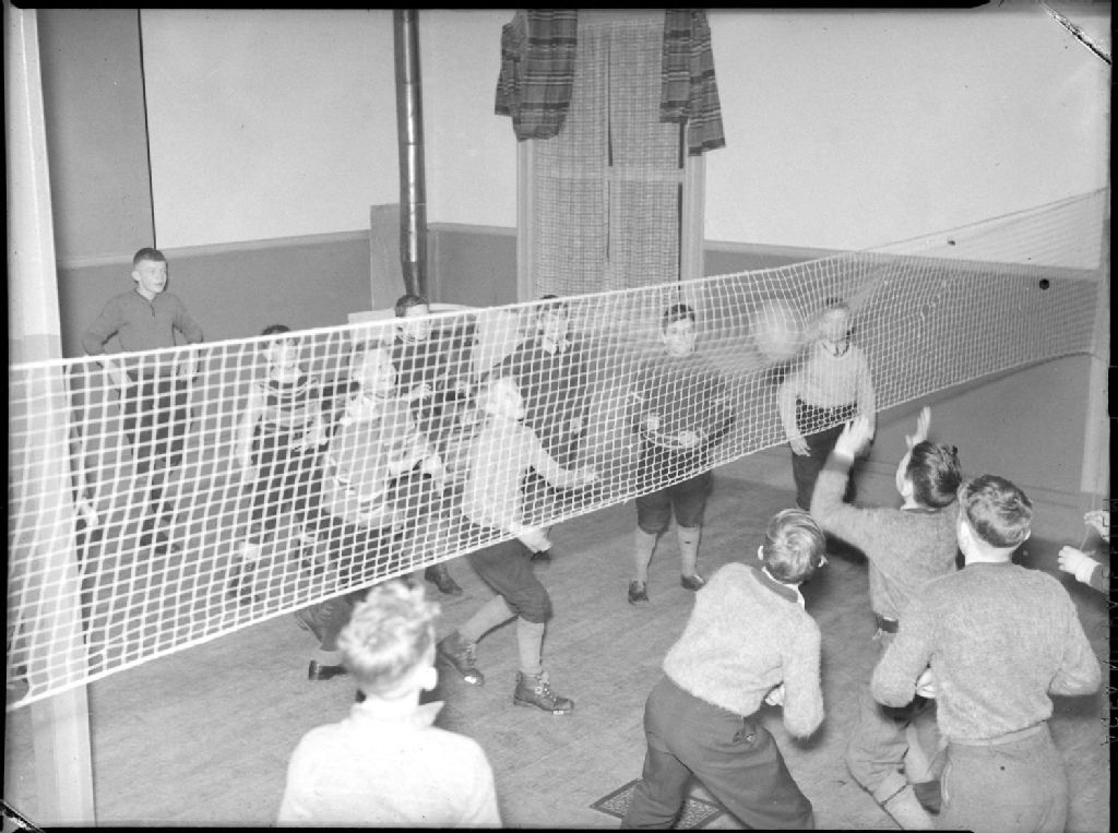 Children. Kinsmen Boys' Club. Volleyball, 27 février 1942, Archives nationales à Montréal, Fonds Conrad Poirier, (06M,P48,S1,P7469), Poirier, Conrad.