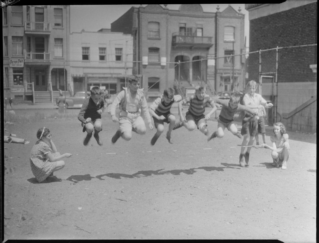 Children. A Gym in Your Own Backyard, 10 juillet 1942, Archives nationales à Montréal, Fonds Conrad Poirier, (06M,P48,S1,P7526), Poirier, Conrad.