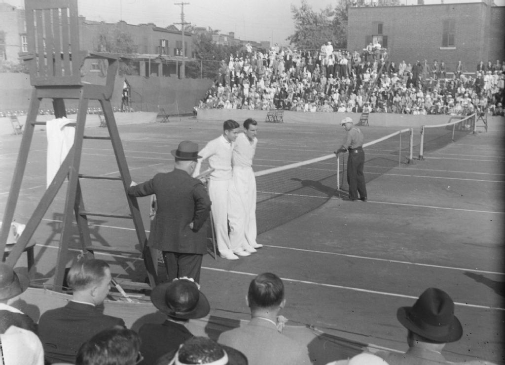 Tournoi de tennis. Nous voyons les terrains, les officiels et le public