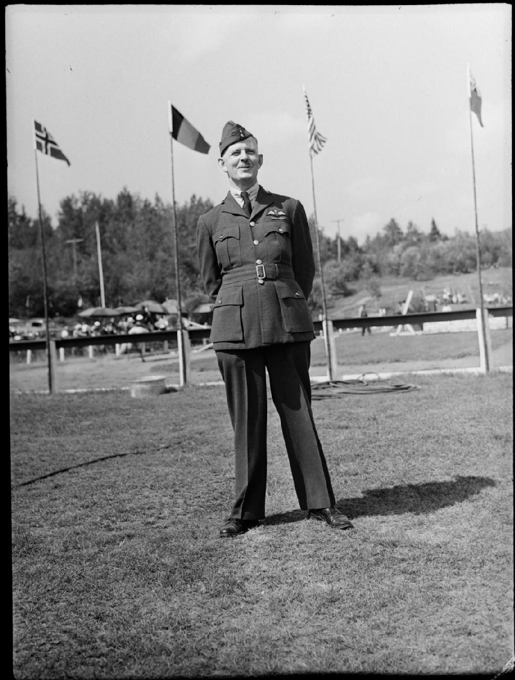Nous voyons un commandant des cadets de l'air de Griffintown à l'extérieur de l'hôtel «Alpine Inn» à Sainte-Marguerite-du-Lac-Masson dans les Laurentides