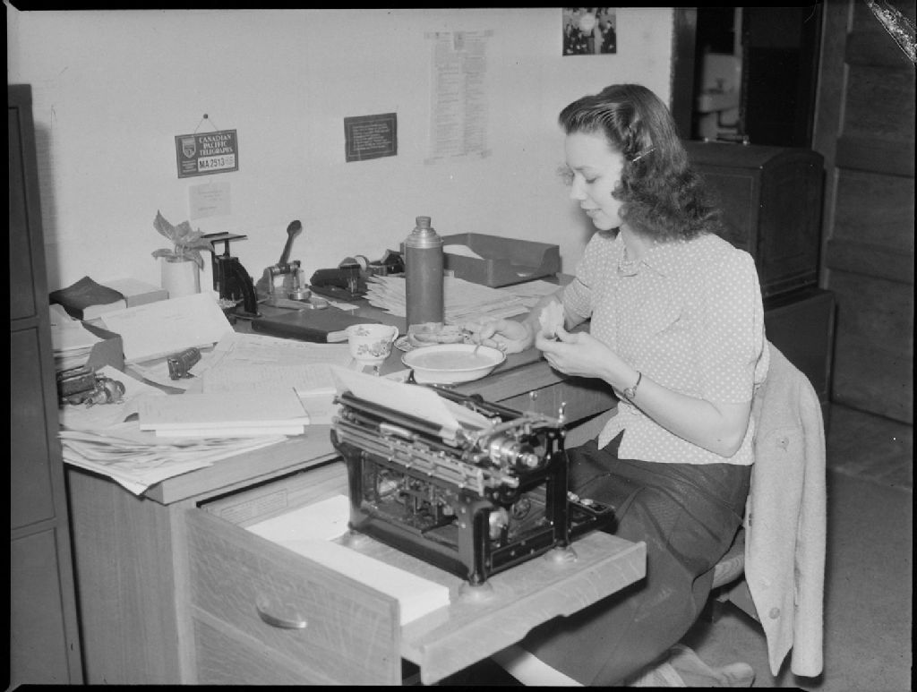 Rita Bode mange à son bureau du «Canadian Pacific Telegraphs» à Montréal