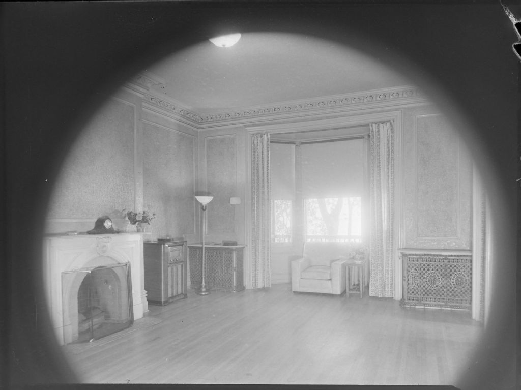 Nous voyons un salon avec foyer et gramophone dans la maison d'accueil des officiers