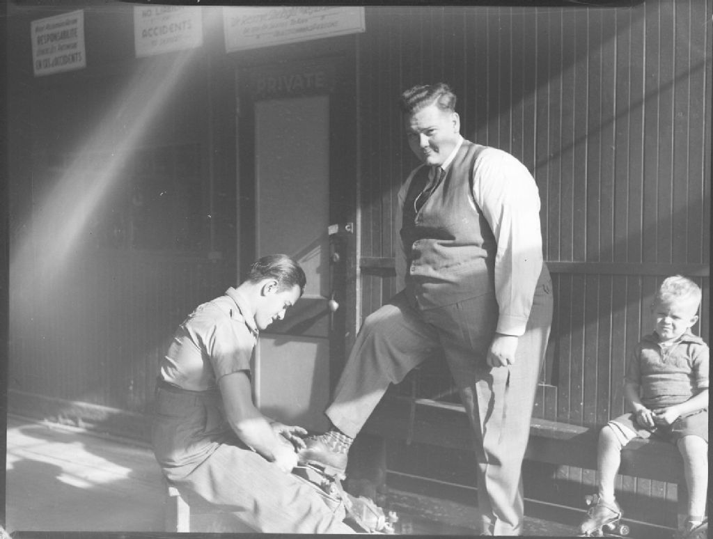 Skating. Mr. Bernard, 15 octobre 1942, Archives nationales à Montréal, Fonds Conrad Poirier, (06M,P48,S1,P8177), Poirier, Conrad.