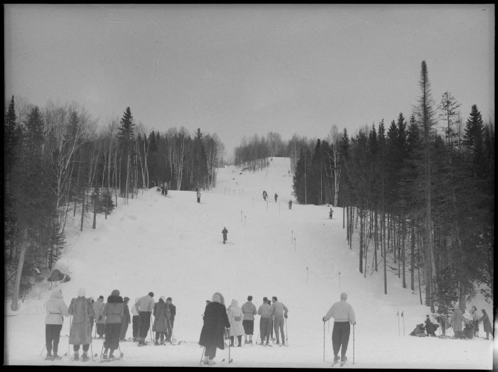 Skiing. Chalet Cochand. Slalom Race Hill, 22 février 1942, Archives nationales à Montréal, Fonds Conrad Poirier, (06M,P48,S1,P8238), Poirier, Conrad.