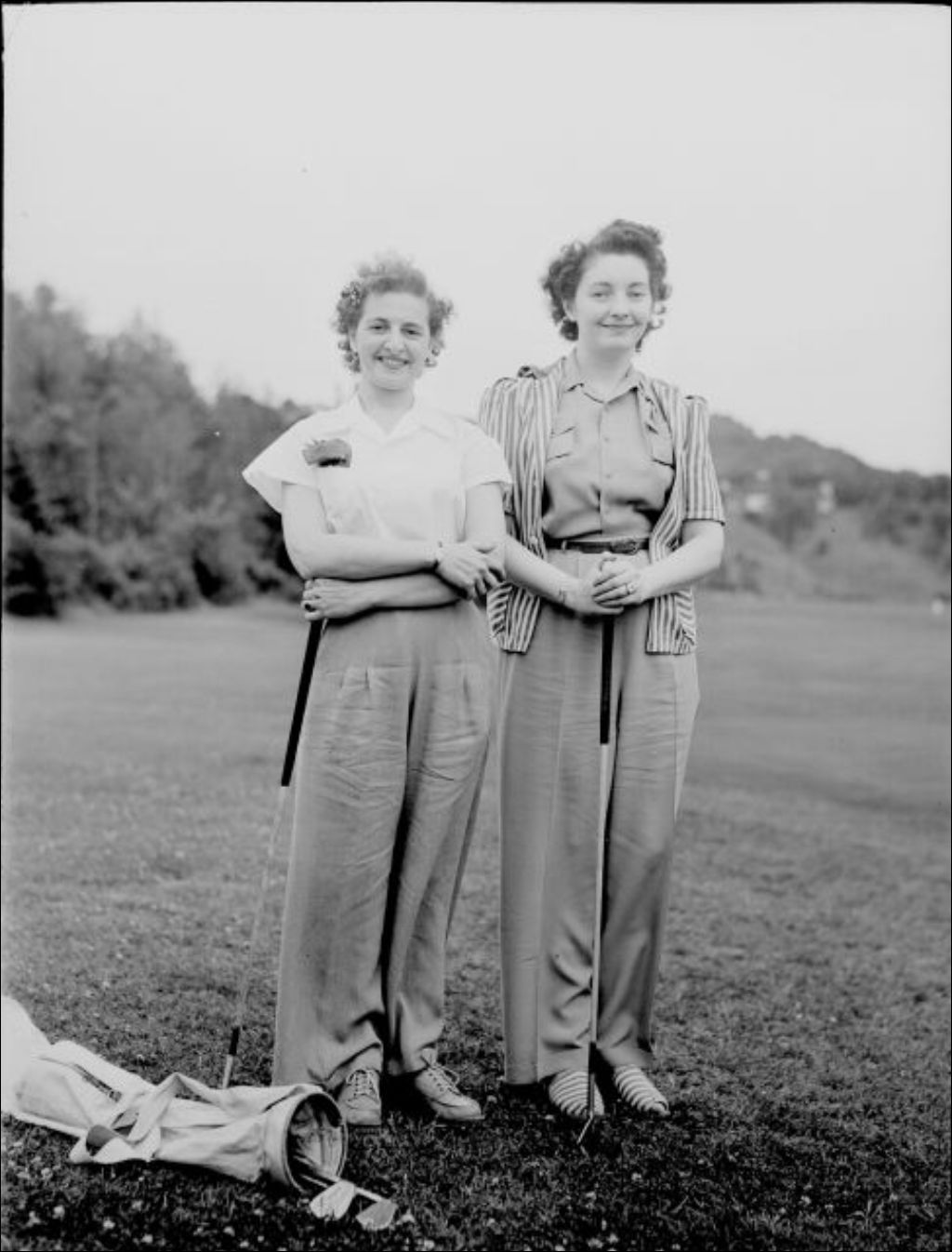 Marguerite Bourgeois et Annette Perron, tenant leurs fers, sont sur le parcours de golf de l'hôtel Alpine Inn à Sainte-Marguerite-du-Lac-Masson dans les Laurentides