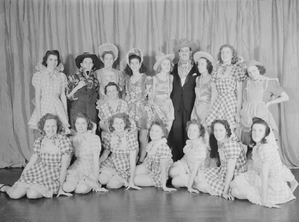 Nous voyons des comédiens la revue musicale «Thumbs Up» portant des vêtements à carreaux et des chapeaux de cow-boy. Ils jouent dans le numéro «Wild and Woolly West»
