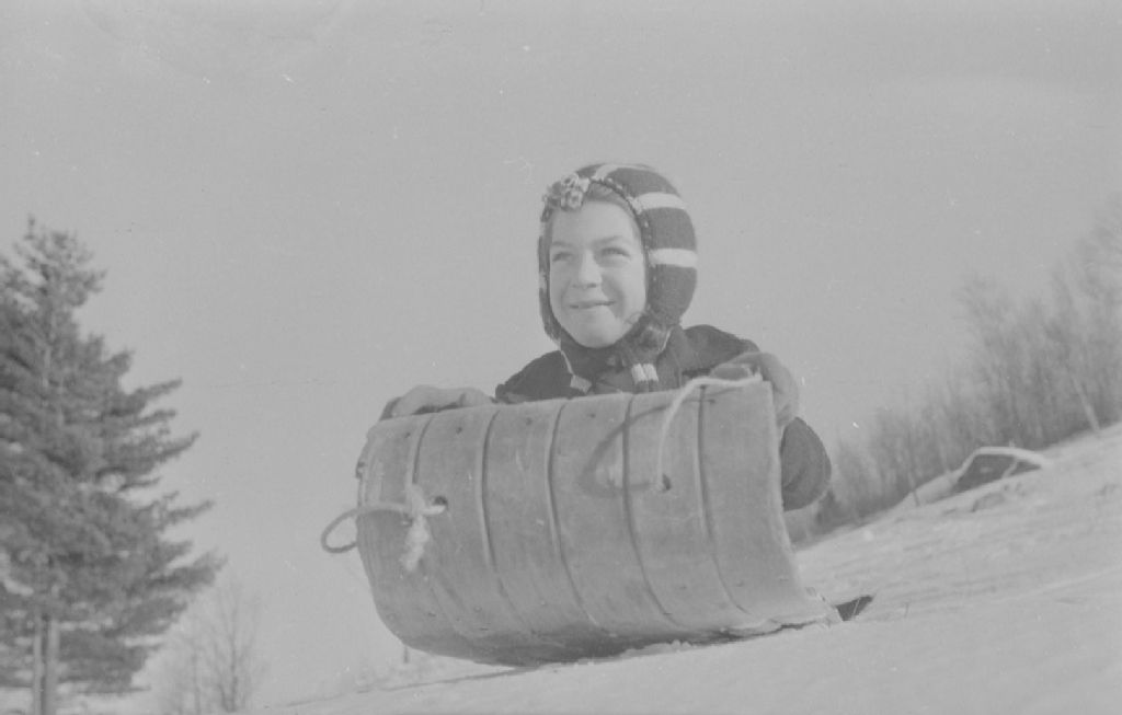 Toboggan. At St-Sauveur, 26 janvier 1942, Archives nationales à Montréal, Fonds Conrad Poirier, (06M,P48,S1,P8481), Poirier, Conrad.