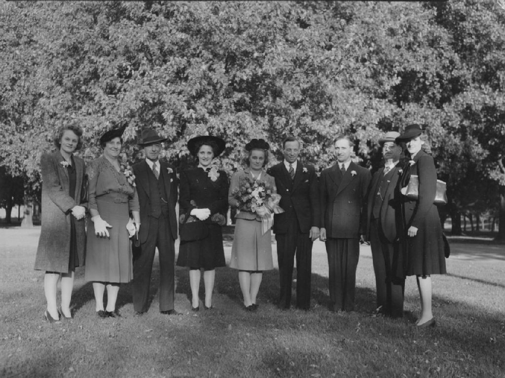 Wedding. Alma Ann Morrisson : Mr. E.A. Morin. Congregational Church, Hibernia et Wellington, 3 octobre 1942, Archives nationales à Montréal, Fonds Conrad Poirier, (06M,P48,S1,P8566), Poirier, Conrad.