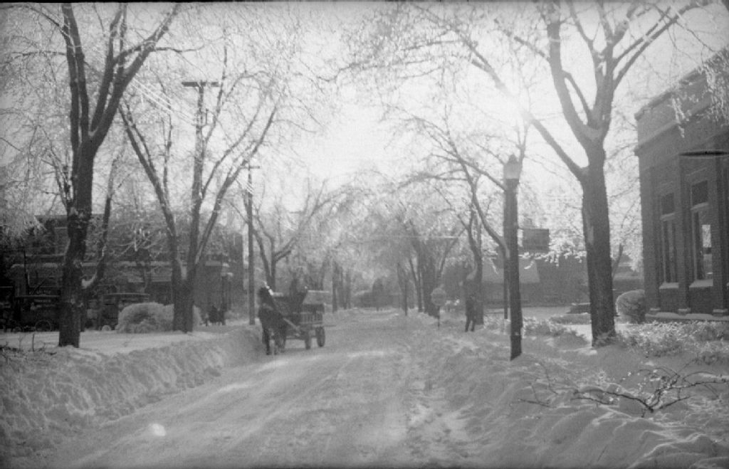 Nous voyons un chariot tiré par un cheval sur la rue Curzon à Montréal-Ouest