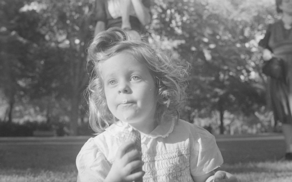 Pierrette Lambert mange un cornet de crème glacée au parc Lafontaine à Montréal