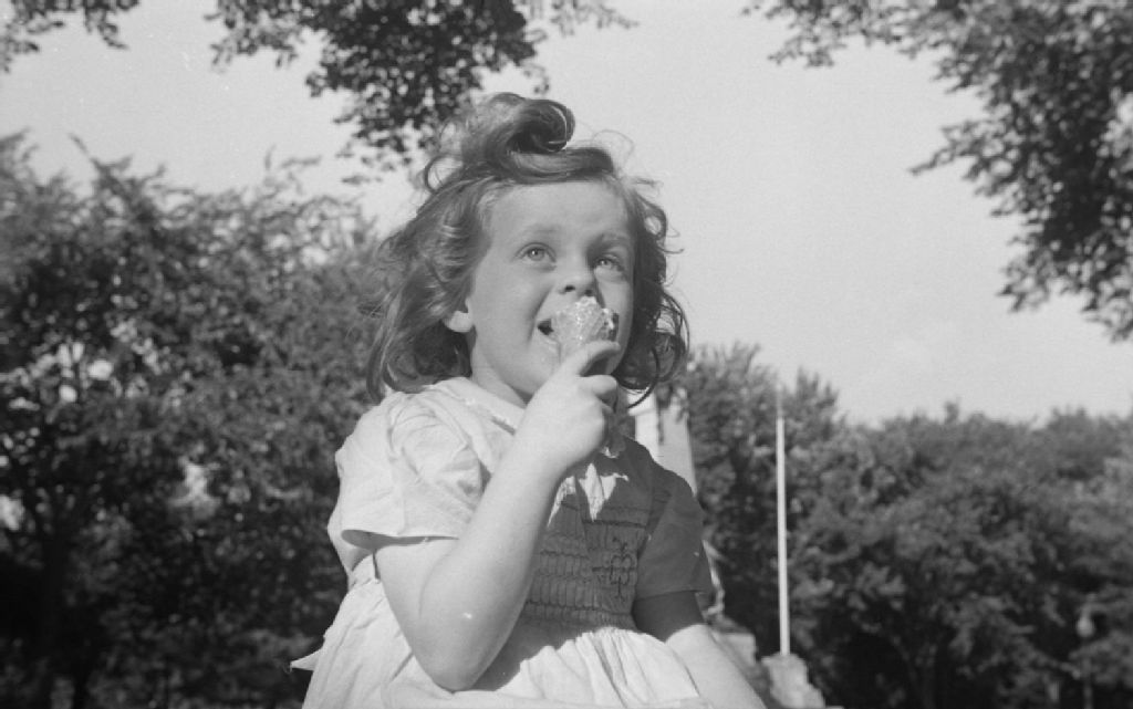 Pierrette Lambert mange un cornet de crème glacée au parc Lafontaine à Montréal