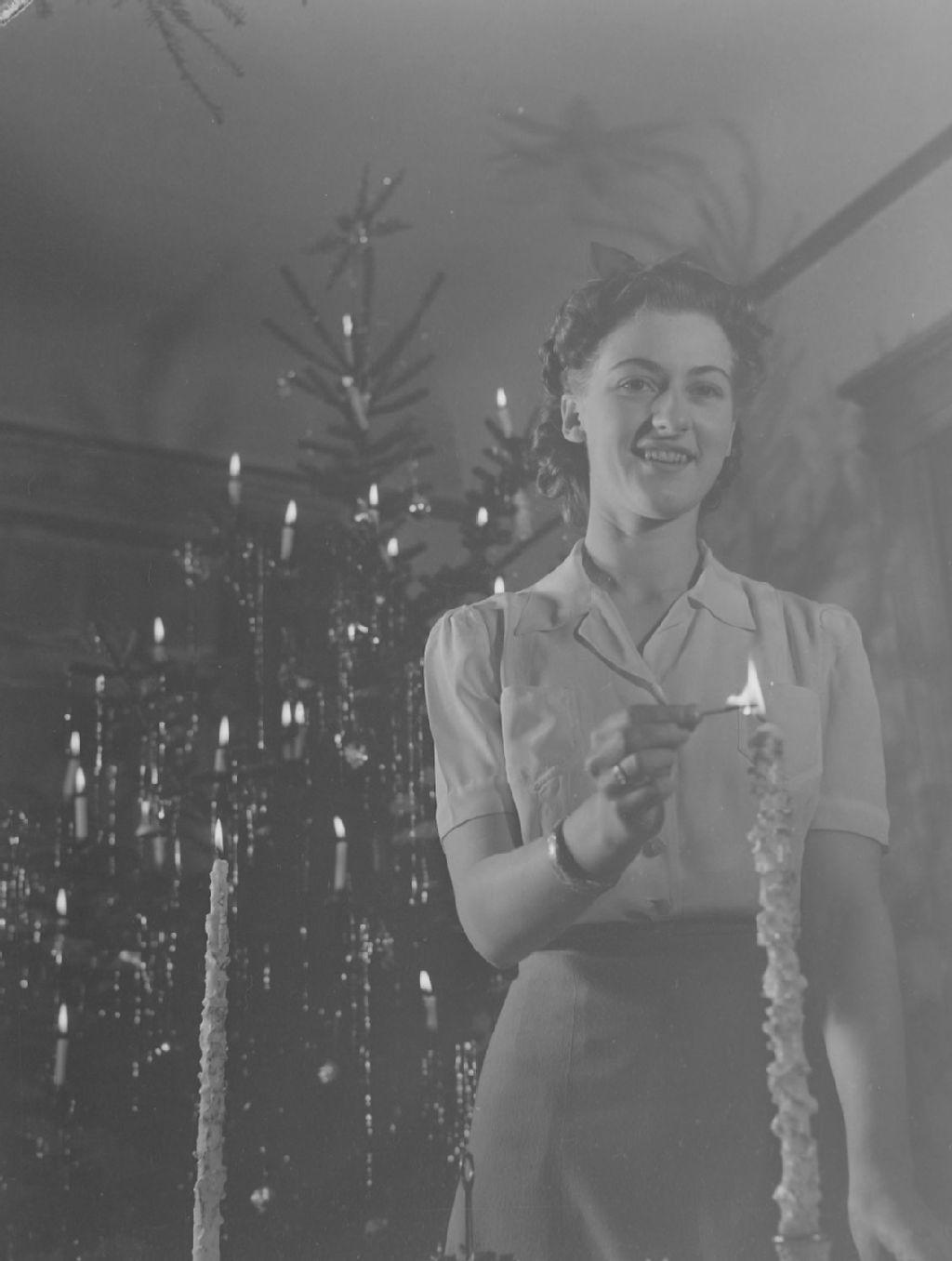 Inga Jewel allume une bougie devant l'arbre de Noël