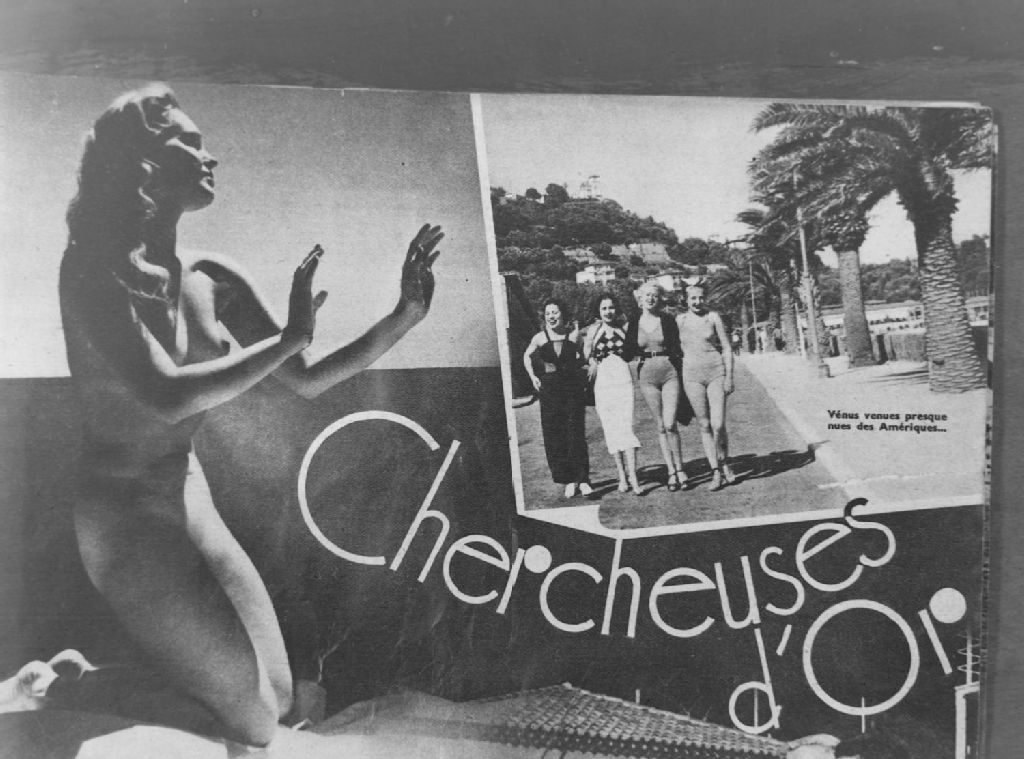Nous voyons la copie d'une photographie d'une femme nue et celle de femmes en maillot de bain et en robe bain-de-soleil. Ces photographies illustrent un article