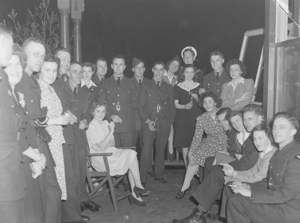 Des officiers de l'armée de l'air et leurs compagnes sont réunis sur la terrasse de la maison d'accueil des officiers