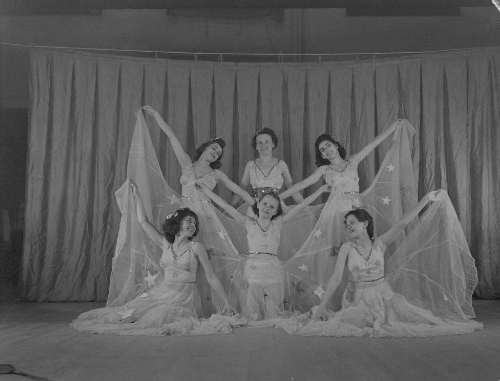 Six danseuses du «Thumbs Up Ballet», vêtues de voiles transparents parsemés d'étoiles, présentent la chorégraphie de «Stars in my Eyes» lors de la revue musicale «Thumbs Up»