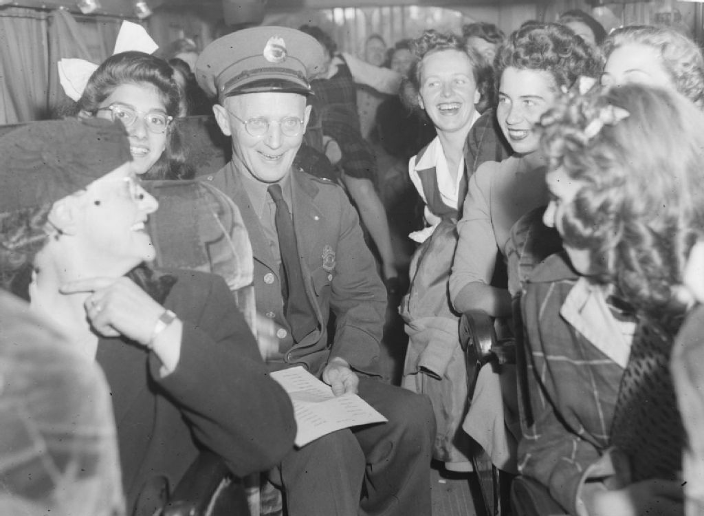 Feature. Thumbs Up at Massena at the Border. Officer U.S. Immigration Lawrence Harrick, 25 septembre 1943, Archives nationales à Montréal, Fonds Conrad Poirier, (06M,P48,S1,P9191), Poirier, Conrad.