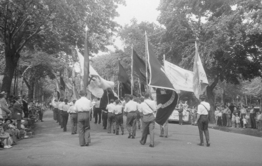 Parade. St. Jean Baptiste Parade, 24 juin 1943, Archives nationales à Montréal, Fonds Conrad Poirier, (06M,P48,S1,P9405), Poirier, Conrad.