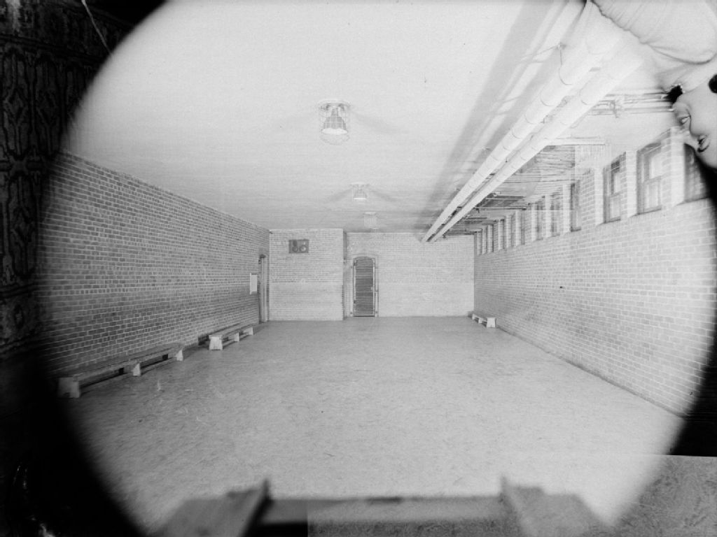 Nous voyons une salle vide destinée à être aménagée en clinique de sang de la Croix-Rouge