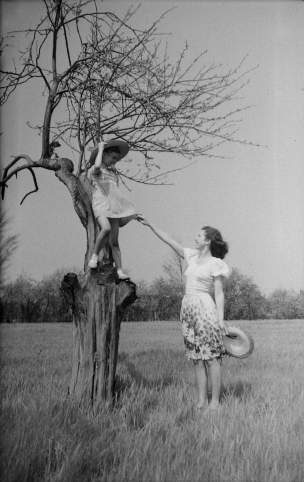 Eileen Greenwood surveille sa petite soeur Shirley qui a grimpé dans un arbre