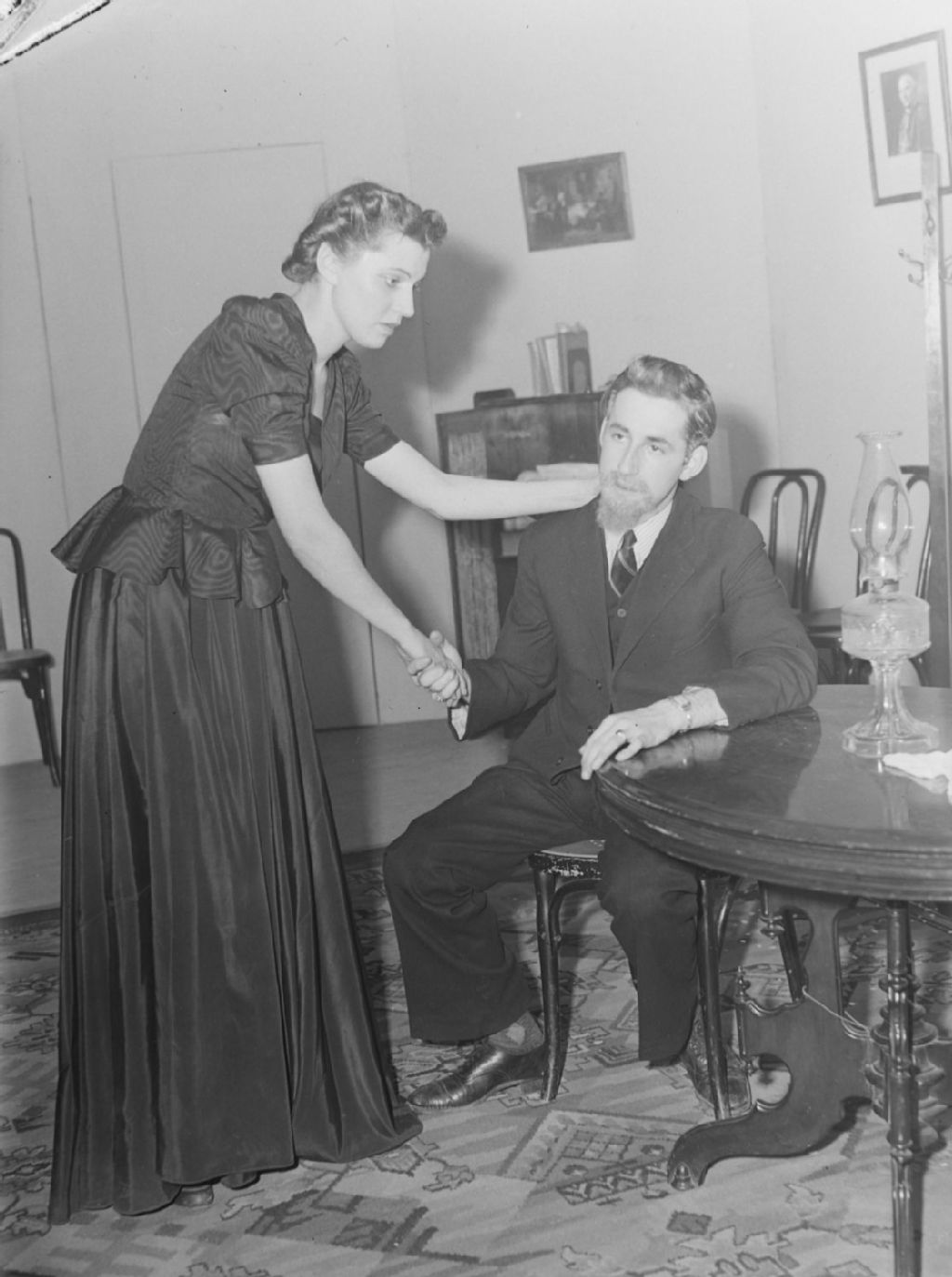 Jean Gervais et une comédienne jouent dans une pièce de théâtre présentée par la «Jeunesse artistique de Montréal»