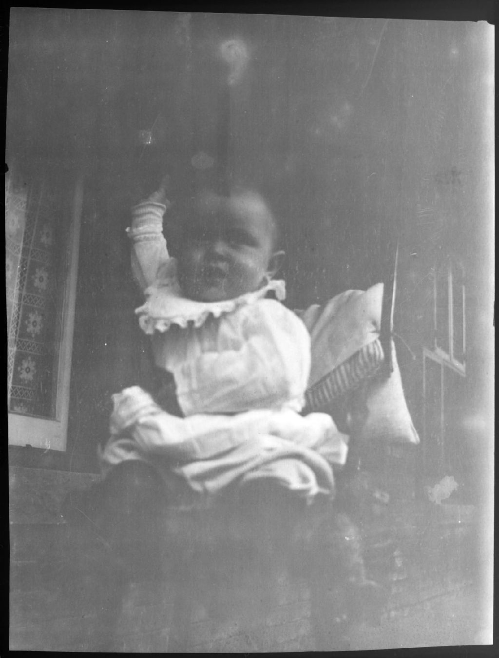 Copie d'une photographie montrant Conrad Poirier, enfant âgé d'environ un an, dans le salon d'une résidence familiale
