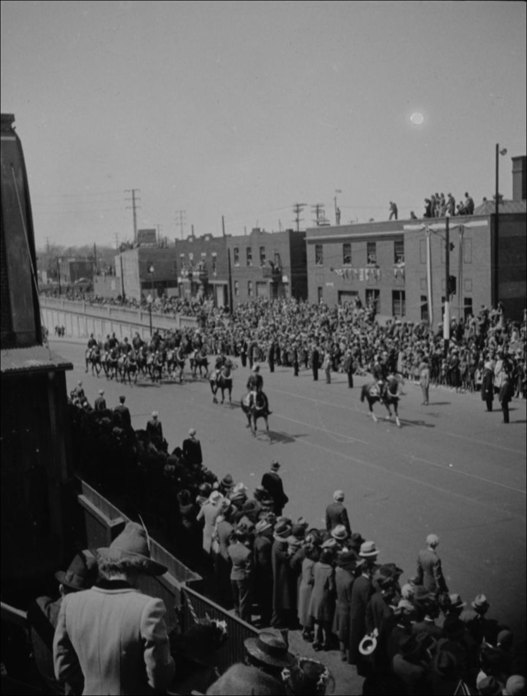 Nous voyons une garde d'honneur à cheval derrière la limousine du couple royal, le roi George VI et de la reine Elisabeth, à Montréal