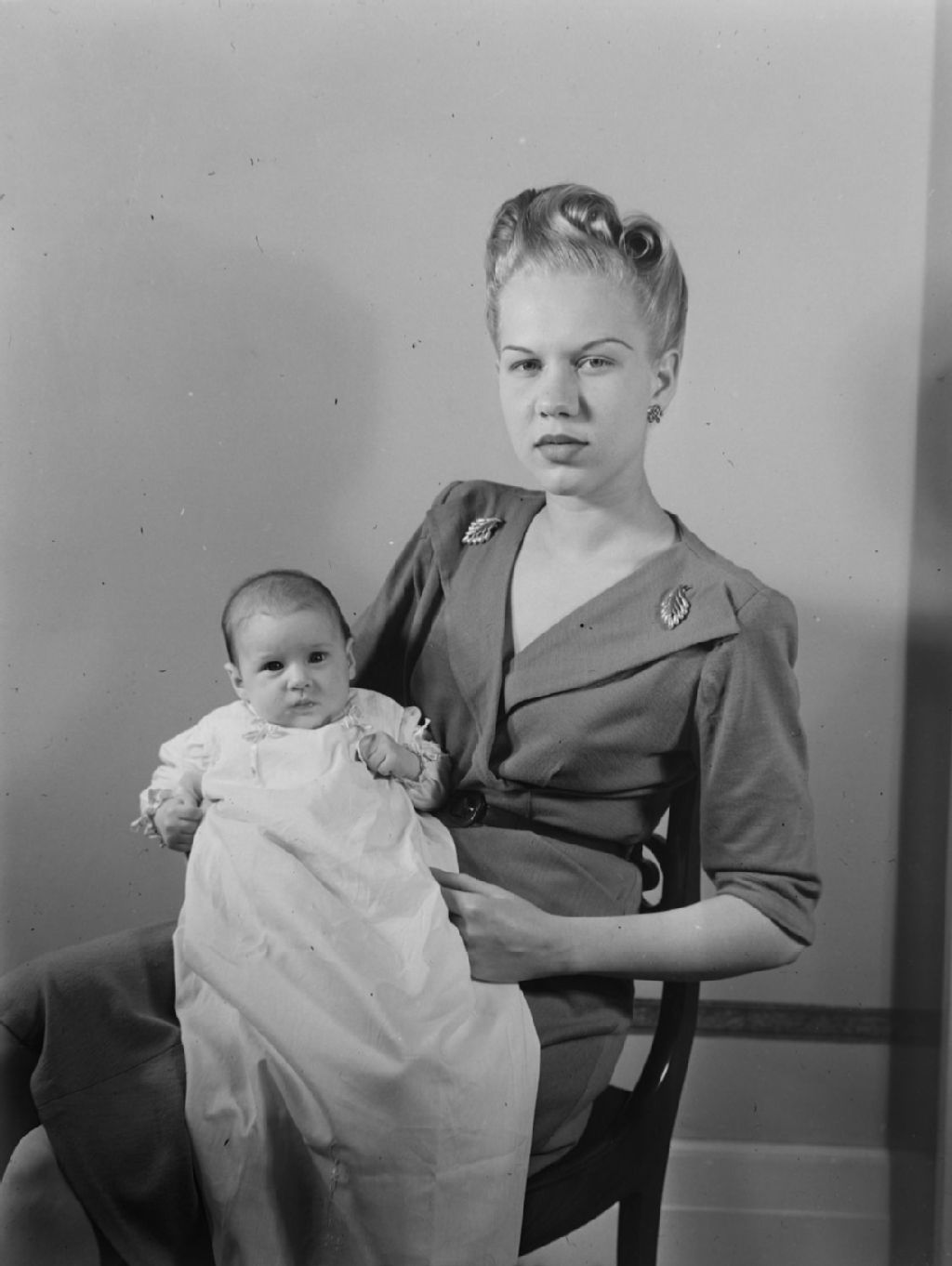 Baby. Mrs. Harrison (Winnie Doherty) and Baby, 2 april 1944, Archives nationales à Montréal, Fonds Conrad Poirier, (06M,P48,S1,P9980), Poirier, Conrad.