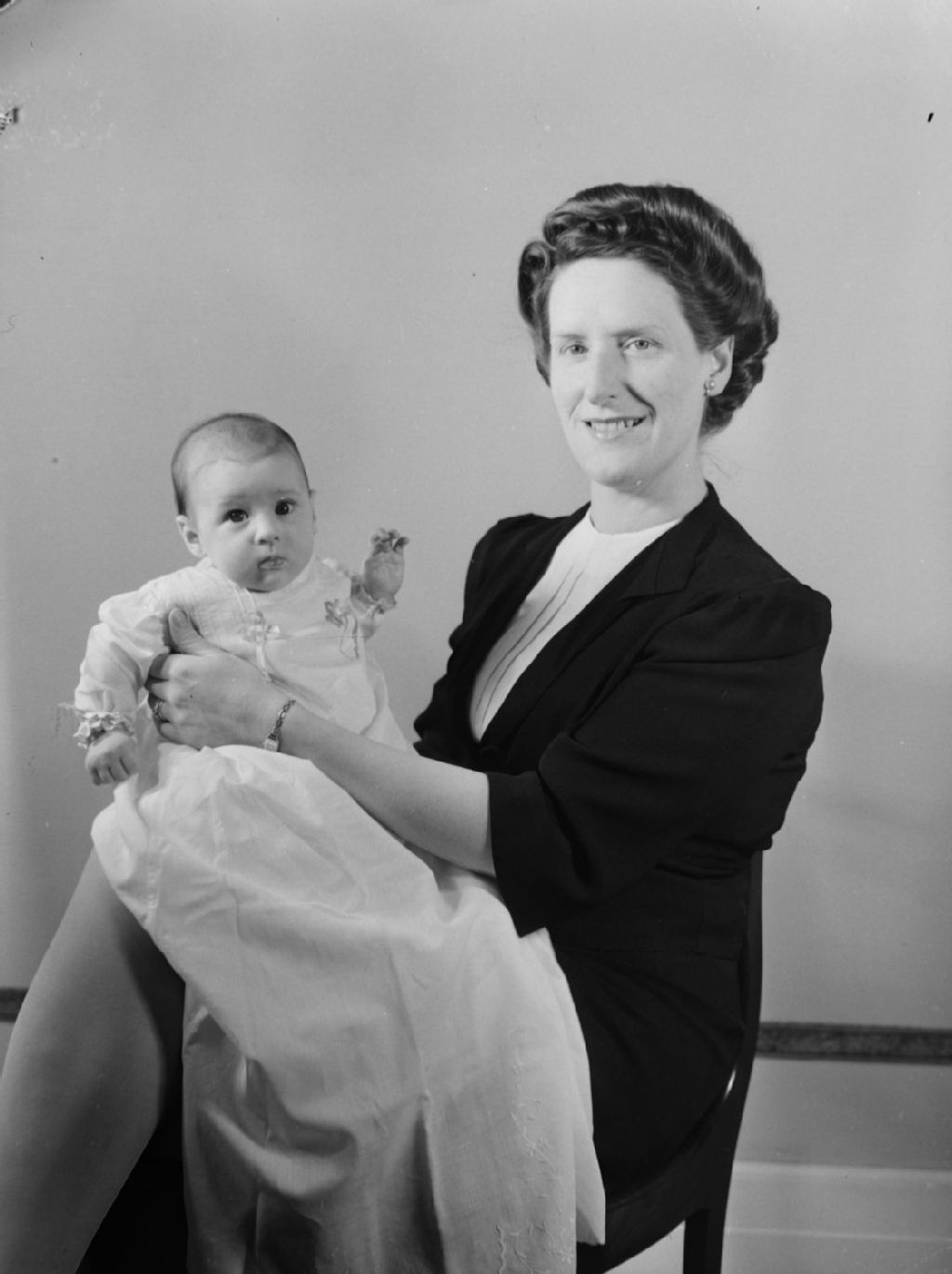 Baby. Mrs. Harrison & Baby, 2 avril 1944, Archives nationales à Montréal, Fonds Conrad Poirier, (06M,P48,S1,P9983), Poirier, Conrad.