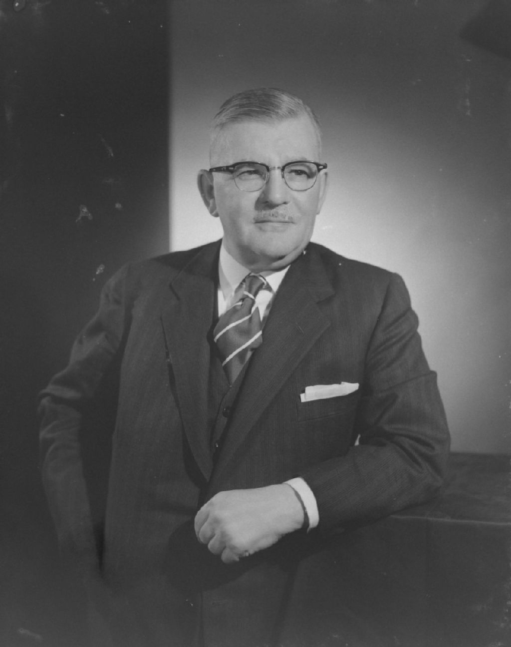 P. H. Bouffard, président de la Banque d'économie du Québec, Mars 1956, Archives nationales à Montréal, Fonds Gabriel Desmarais (Gaby), (06M,P795,S1,D4397), Photo Gaby (Gabriel Desmarais).