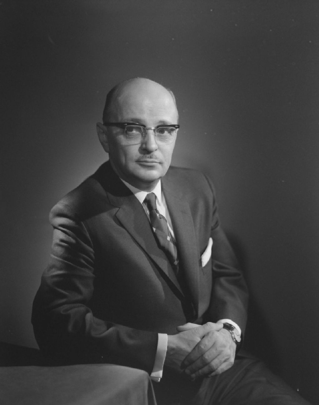 Napoléon Laplante, vice-président de La Survivance, Novembre 1958, Archives nationales à Montréal, Fonds Gabriel Desmarais (Gaby), (06M,P795,S1,D9463), Photo Gaby (Gabriel Desmarais).
