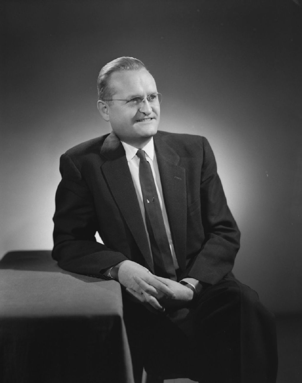 Jean Leman, président de Candiac Development, 25 février 1959, Archives nationales à Montréal, Fonds Gabriel Desmarais (Gaby), (06M,P795,S1,D9623), Photo Gaby (Gabriel Desmarais).