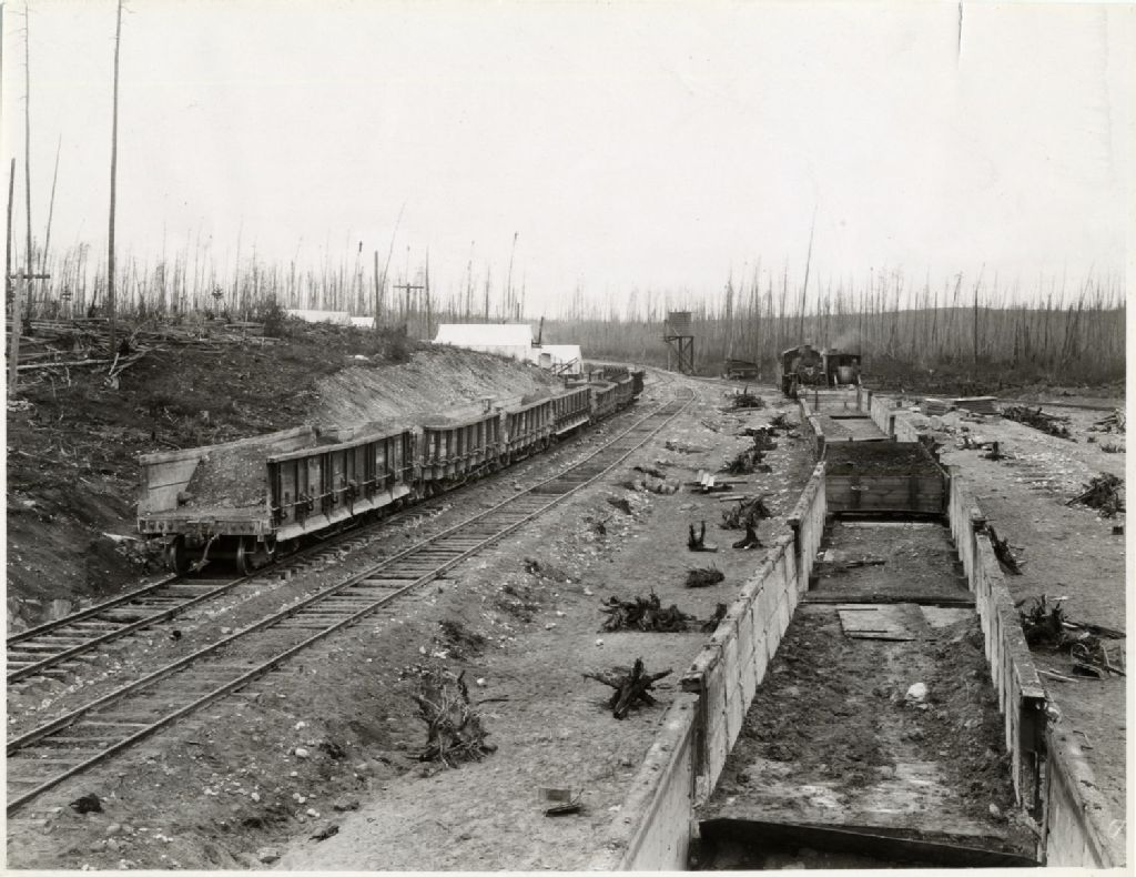 Dernières phases de la construction du nouvel embranchement qui relie Rouyn à Taschereau, [Vers 1930], Archives nationales à Québec, Fonds L'Action catholique, (03Q,P428,S3,SS1,D10,P20), Photo. C. N. R.