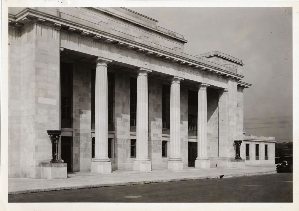 Partie de la façade de la gare Jean-Talon, [Vers 1930], Archives nationales à Québec, Fonds L'Action catholique, (03Q,P428,S3,SS1,D10,P29), Canadian Pacific Ry. Co.