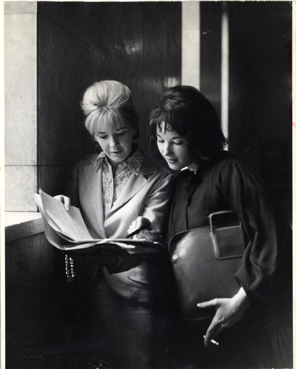 Andrée Lachapelle et Dyne Mousso en répétition pour "Marie Tellier" [Radio-Canada], 1964-1969, Archives nationales à Québec, Fonds L'Action catholique, (03Q,P428,S3,SS1,D11,P14), André Le Coz.