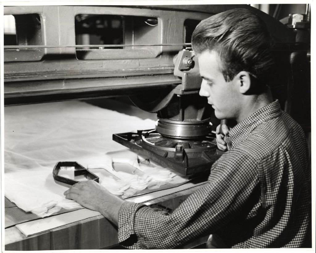 Un homme au travail chez Dominion Corset Co. Ltd, [Vers 1960], Archives nationales à Québec, Fonds L'Action catholique, (03Q,P428,S3,SS1,D13,P10-8), Max Sauer.