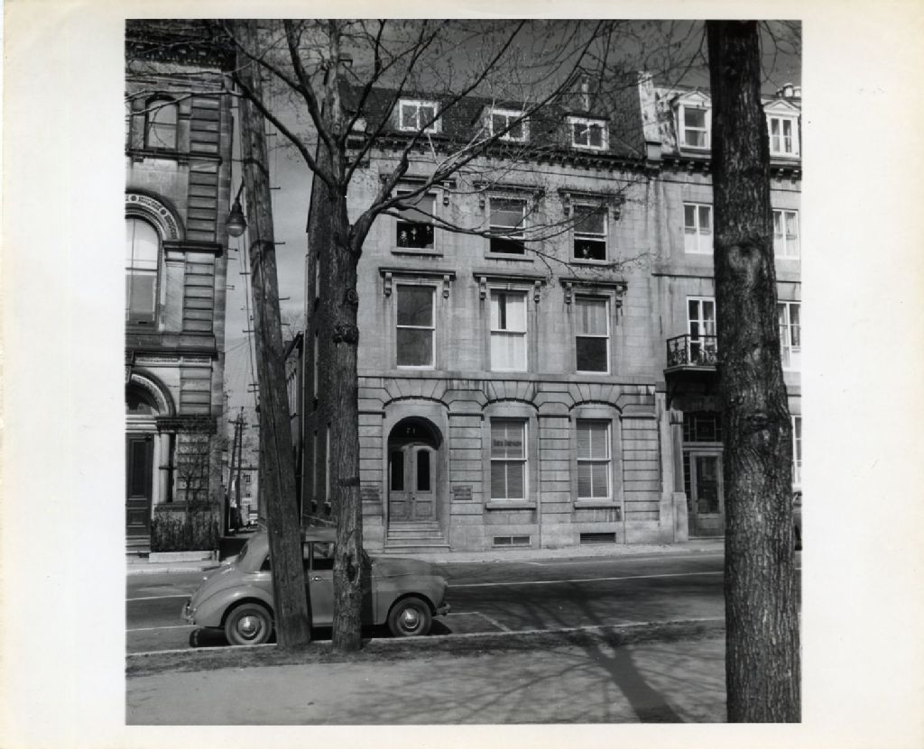 Vue éloignée de la façade. L'édifice était situé sur la rue d'Auteuil du quartier Vieux-Québec. Université Laval, école de pédagogie