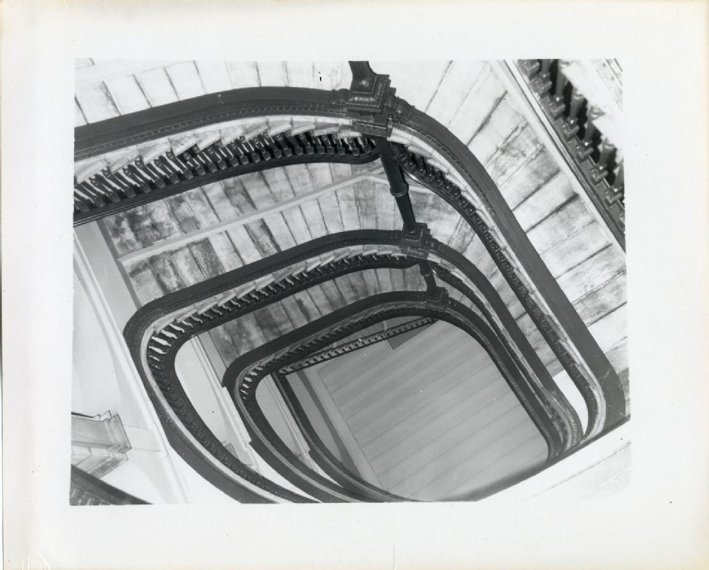Escalier du Petit Séminaire de Québec, [Vers 1965], Archives nationales à Québec, Fonds L'Action catholique, (03Q,P428,S3,SS1,D13,P14-52), Photographe non identifié.