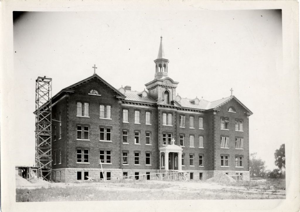 Noviciat des Pères Montfortains pendant sa construction, [Vers 1920], Archives nationales à Québec, Fonds L'Action catholique, (03Q,P428,S3,SS1,D13,P19), Photographe non identifié.