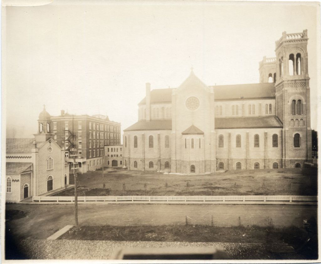 Église Saint-Sacrement, [Vers 1925], Archives nationales à Québec, Fonds L'Action catholique, (03Q,P428,S3,SS1,D14,P11-1), Photographe non identifié.