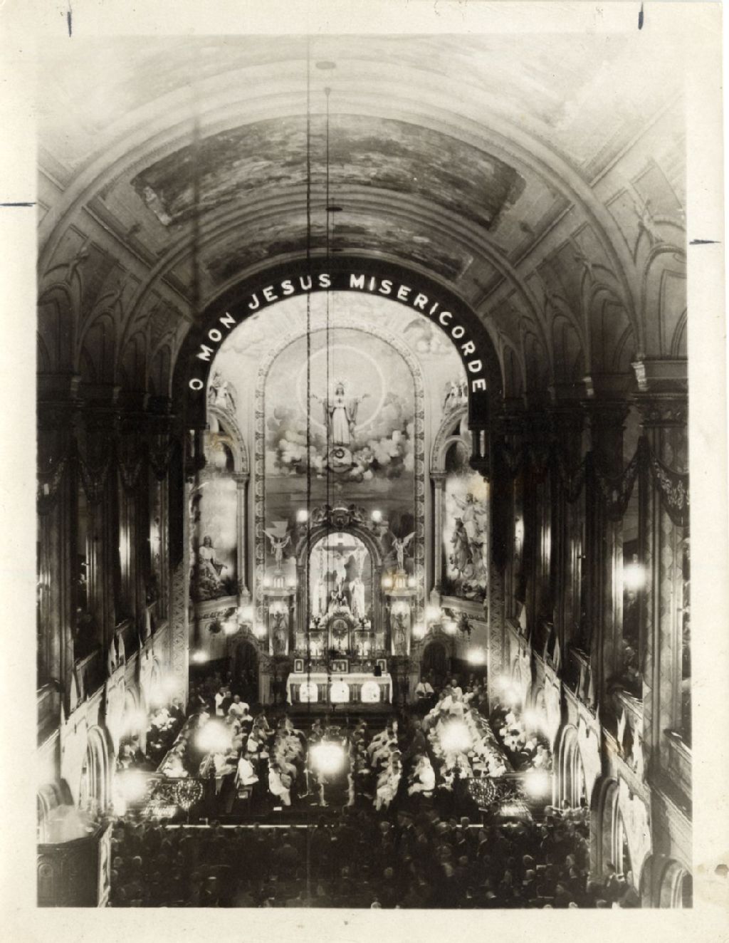 Vue intérieure de l'église Saint-Sauveur lors d'une cérémonie religieuse, [Vers 1925], Archives nationales à Québec, Fonds L'Action catholique, (03Q,P428,S3,SS1,D14,P12-17), Photographe non identifié.