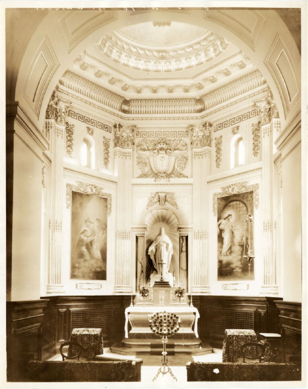 Intérieur de la Basilique-cathédrale Notre-Dame-de-Québec, [Vers 1925], Archives nationales à Québec, Fonds L'Action catholique, (03Q,P428,S3,SS1,D14,P14-13), Photographe non identifié.