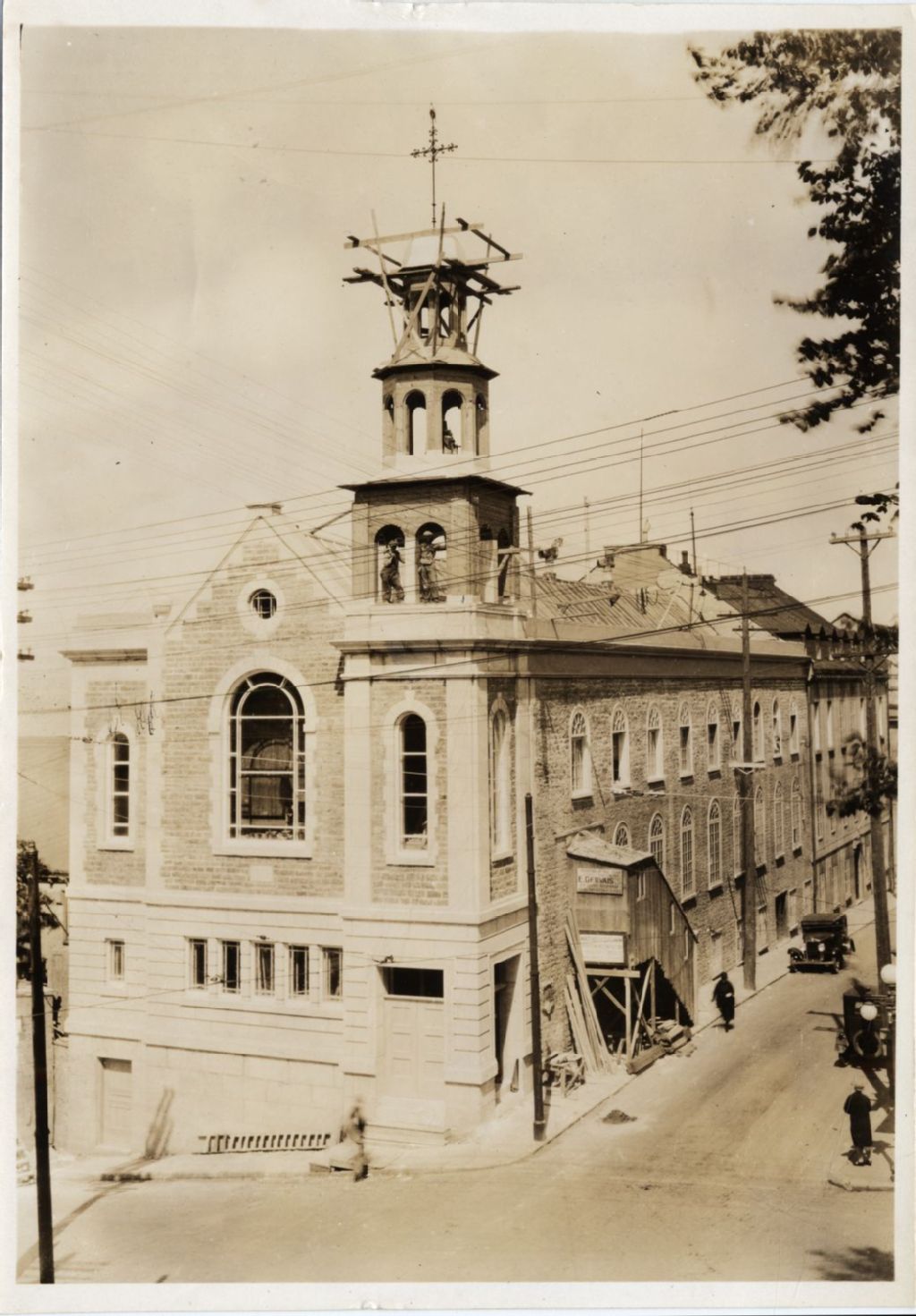 Chapelle des Jésuites en chantier de construction, [Vers 1930], Archives nationales à Québec, Fonds L'Action catholique, (03Q,P428,S3,SS1,D14,P14-20), Photographe non identifié.