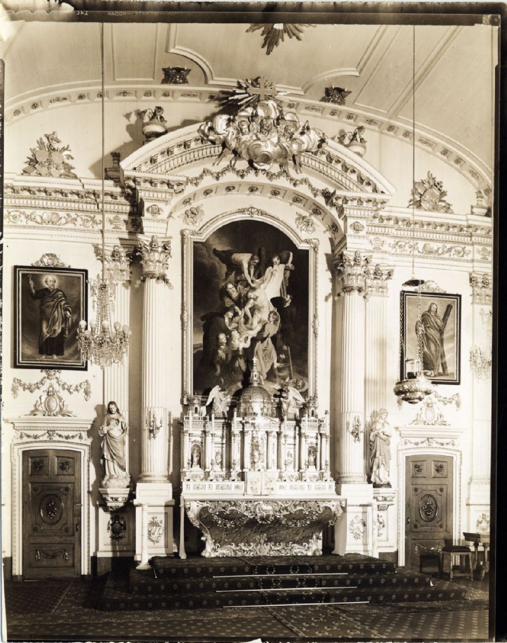 Maître-autel de la chapelle de l'hôpital Hôtel-Dieu, [Vers 1925], Archives nationales à Québec, Fonds L'Action catholique, (03Q,P428,S3,SS1,D14,P14-30), Photographe non identifié.