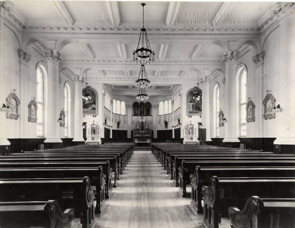 Intérieur de la chapelle de la maison provinciale des Frères des Écoles Chrétiennes, [Vers 1925], Archives nationales à Québec, Fonds L'Action catholique, (03Q,P428,S3,SS1,D14,P145), Photographe non identifié.