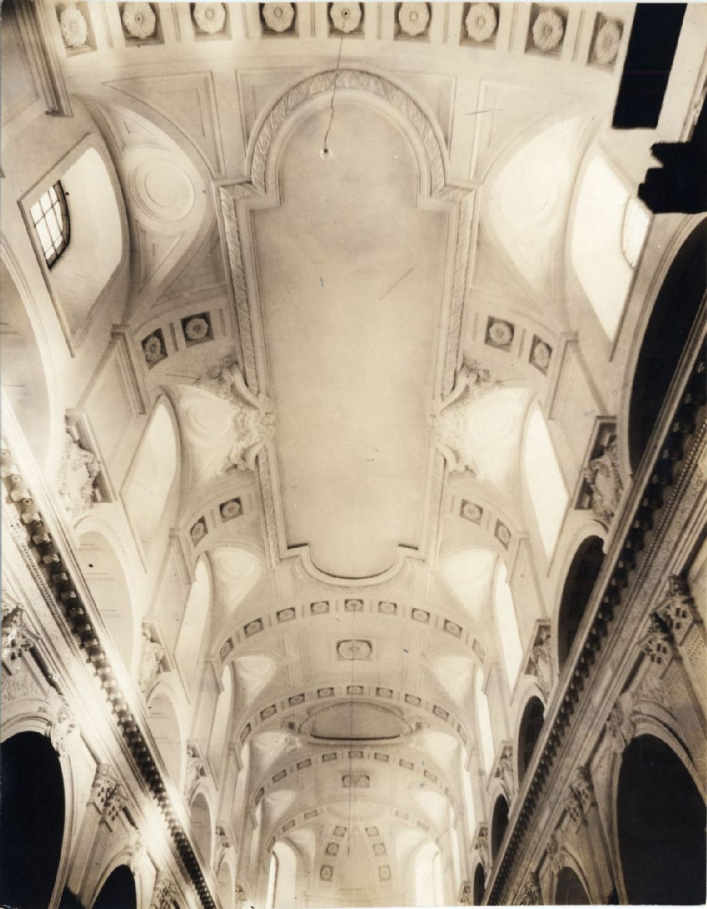 Vue du plafond de la Basilique-cathédrale Notre-Dame-de-Québec en chantier de construction, 1923, Archives nationales à Québec, Fonds L'Action catholique, (03Q,P428,S3,SS1,D14,P14-9), Photographe non identifié.
