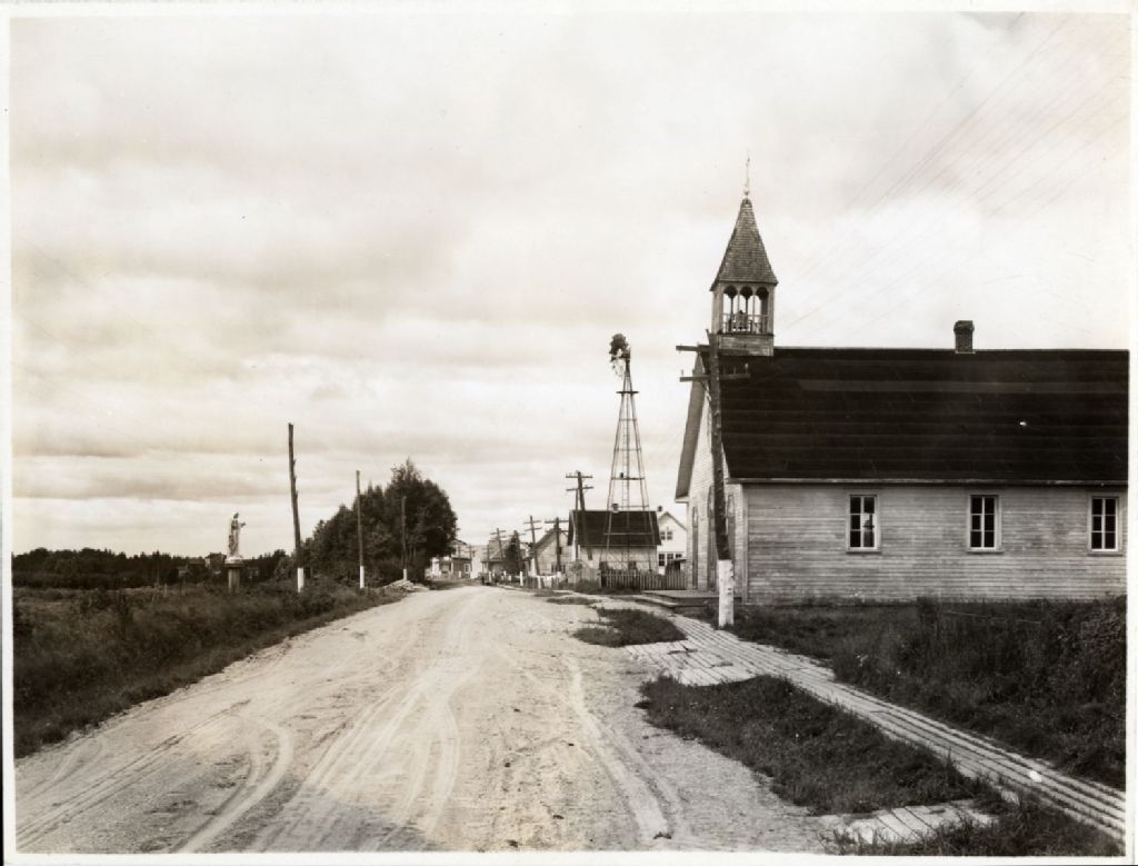 Église de Péribonka, [Vers 1930], Archives nationales à Québec, Fonds L'Action catholique, (03Q,P428,S3,SS1,D14,P71), Chemin de fer national du Canada.