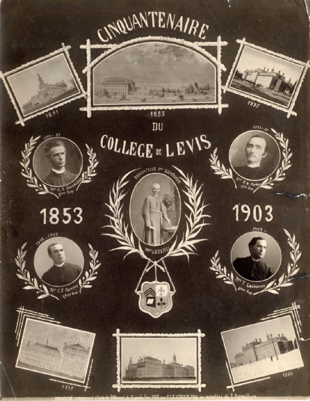Montage photographique du cinquantenaire du collège de Lévis, 1853-1903, 1903, Archives nationales à Québec, Fonds L'Action catholique, (03Q,P428,S3,SS1,D16,P1), F. I. E. Giroux.