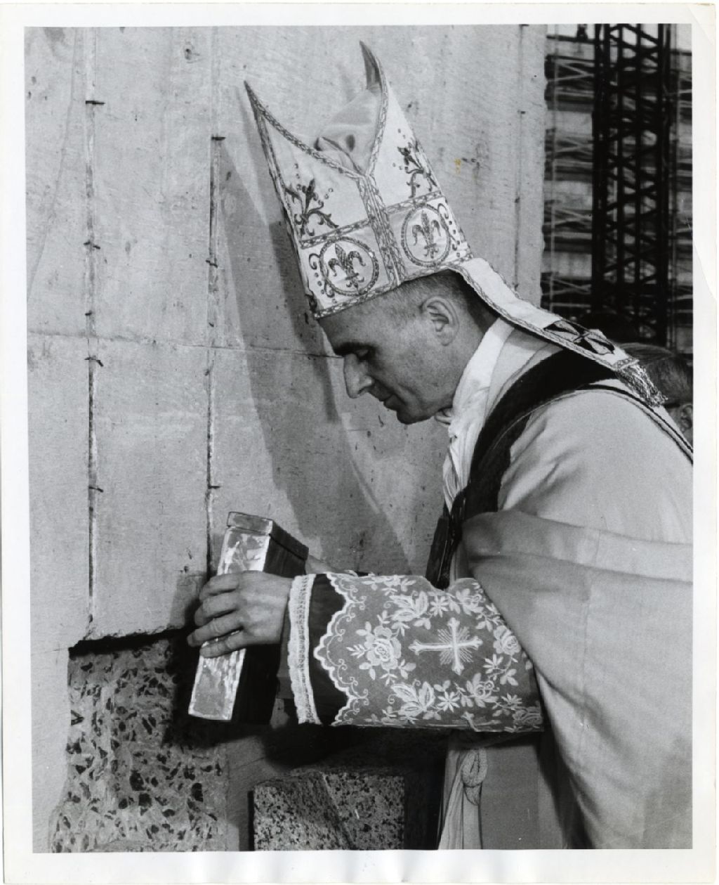 Mgr Maurice Roy lors de la cérémonie de pose de la pierre angulaire du Grand Séminaire